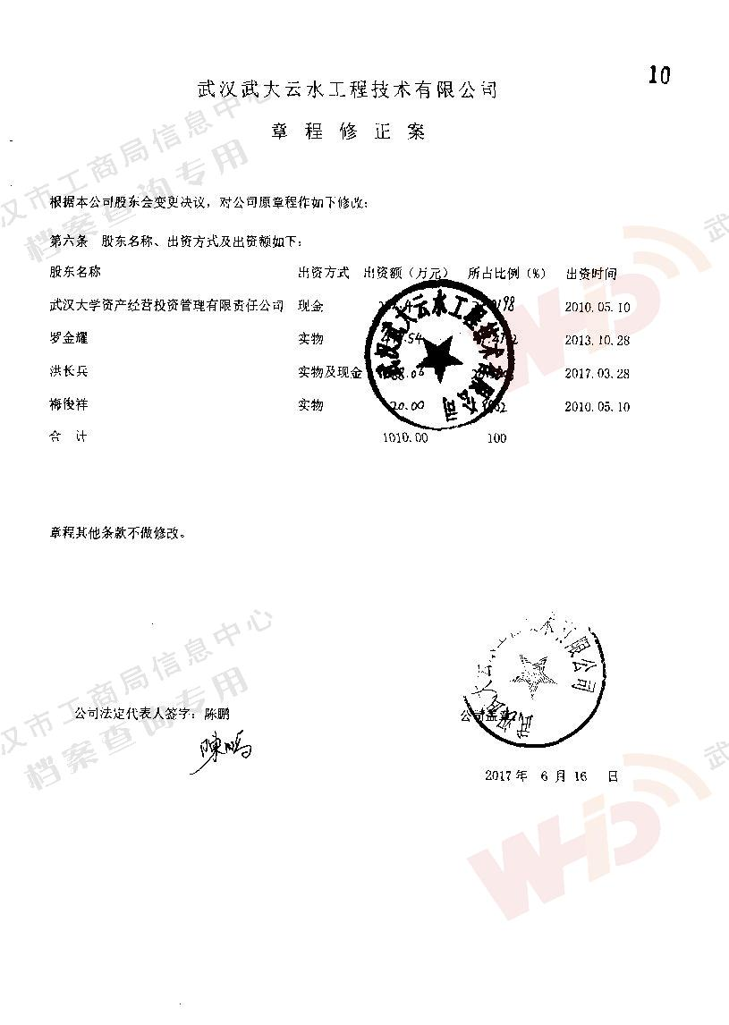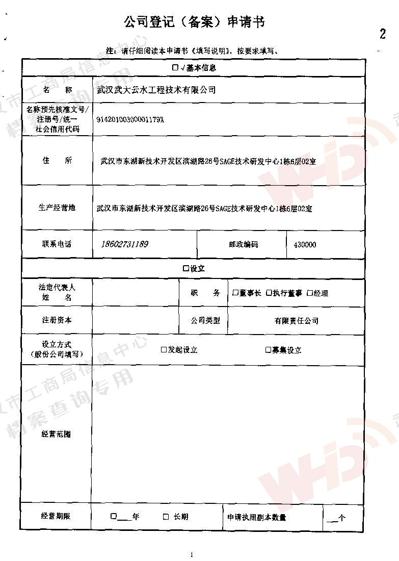 - 2018年5月15日武漢正譽(yù)實(shí)業(yè)集團(tuán)有限公司入股武漢武大云水工程技術(shù)有限公司。